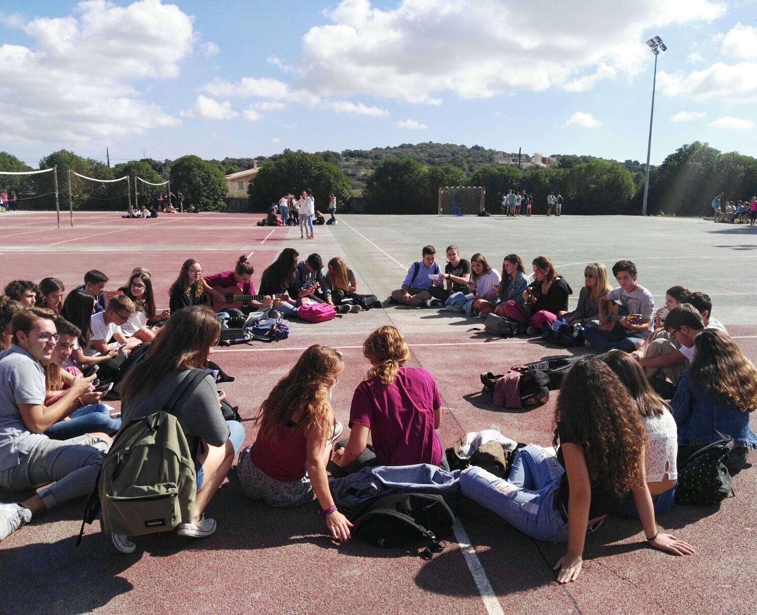 A partir d'una iniciativa dels alumnes de música de 2n de Batxillerat, avui el temps del pati tothom que ha volgut ha pogut renunciar a les seves diferències ideològiques per tal de defensar el dret a  la llibertat d'expressió.